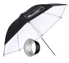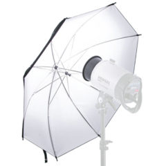 Es ist der klassische Lichtformer, auf den kein Profi verzichtet. Der weisse Schirm gibt ein ideales weiches Licht ab, egal ob als Aufhellung oder als Hauptlicht bei Porträts oder Fashion-Aufnahmen und bewirkt angenehme Hauttöne durch tendenziell leicht warmtonige Farbwiedergabe. Zudem lässt er sich durch seine Regenschirm-ähnliche Konstruktion schnell aus- und einpacken.