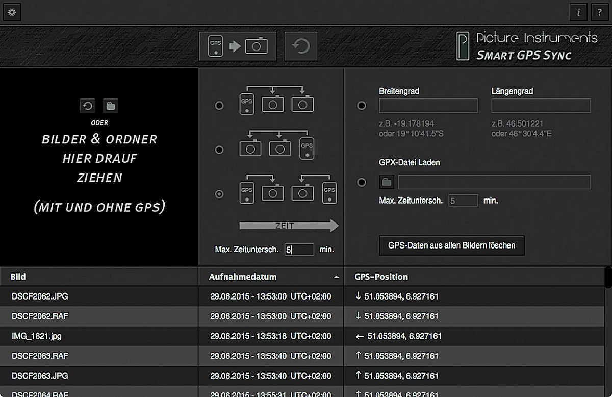 … mit Smart GPS Sync einfach auf jedes Bild übertragen werden
