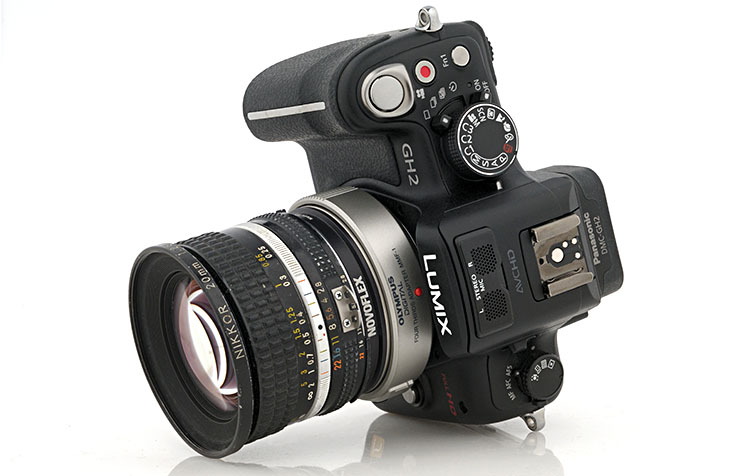 Nikkor-Objektiv auf Panasonic-Kamera mittels zwei Adaptern (Nikon-zu-FT, FT-zu-MFT) montiert. (Foto: M. Zitt)