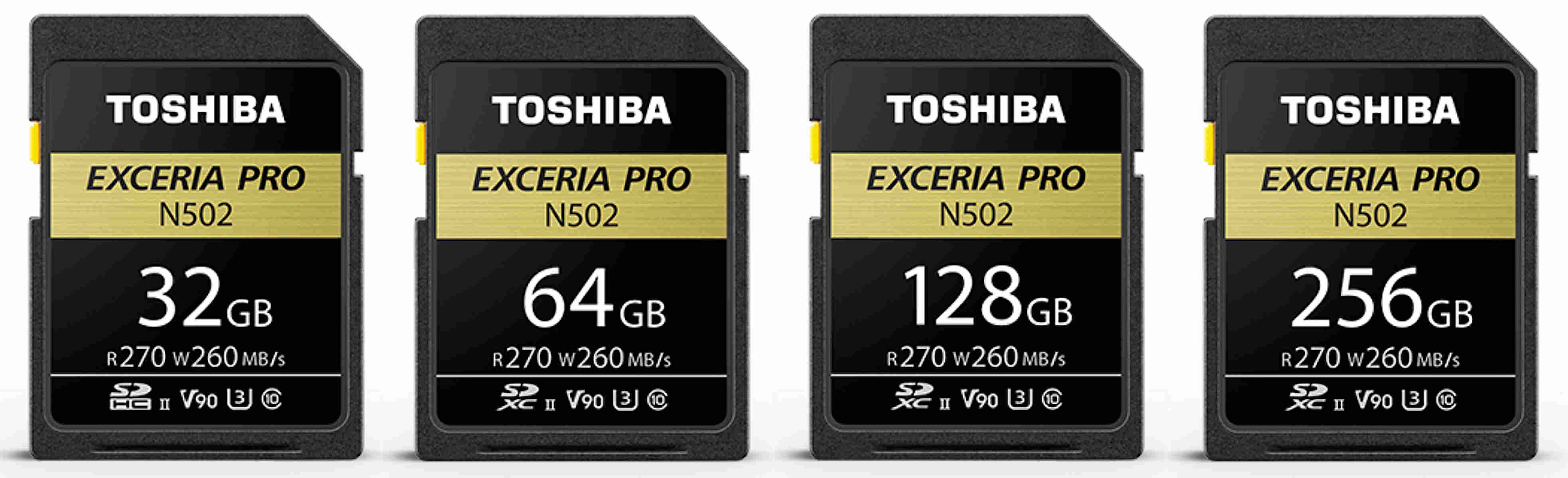Toshiba Memory Europe GmbH präsentiert mit der N502 UHS-II Exceria PRO neue SD-Karten, die die hohen Anforderungen aktueller Digitalkameras erfüllen. Sie unterstützen 4K- und 8K-Videoaufnahmen sowie Serienbildaufnahmen. Die neuen Karten bieten eine Datentransfergeschwindigkeit von mindestens 90MB/s, eine maximale Lesegeschwindigkeit von 270MB/s und eine maximale Schreibgeschwindigkeit von 260MB/s. Sie entsprechen damit der Video-Geschwindigkeitsklasse 90, UHS-Geschwindigkeitsklasse 3 und SD-Geschwindigkeitsklasse 10.