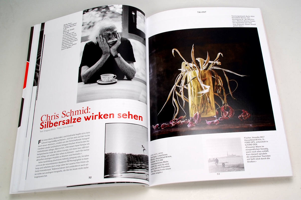 Das Heft ist von vorne bis hinten eine Wundertüte und überrascht überall mit wertvollen Informationen zu einer Fotografie, die von vielen längst totgeglaubt ist. Dabei gewinnt die Fotografie mit Film immer mehr Anhänger – und erstaunlicherweise sind viele davon junge Leute, die im digitalen Zeitalter aufwuchsen und nun eine andere, wahrscheinlich noch faszinierendere Bilderwelt kennenlernen möchten.