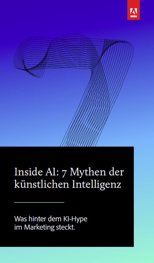 Im kostenfreien E-Book «Inside Al: 7 Mythen der künstlichen Intelligenz» von Adobe klärt das Unternehmen diese Halbwahrheiten auf, bereitet Sie auf den Einsatz von Kl in Ihrem Unternehmen vor und zeigt, was Künstliche Intelligenz heute schon alles kann. Jetzt kostenfrei herunterladen!
