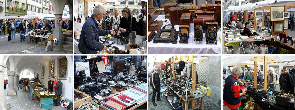 Ab 9 Uhr morgens bis ca. 4 Uhr nachmittags werden im hübschen Zentrum des Städtchens zahllose Trouvaillen, Raritäten, aber auch modernste Geräte und Profiausrüstungen angeboten, von Kameras und Optik bis zum kompletten Fotolabor, Projektions- oder Digi-Equipment! Auch Film- und Bücherfreunde finden hier eine Riesenauswahl an Material aller Epochen und Autoren. Der regionale Photoclub bietet einen Komissionsverkauf an, hier können private Einzelstücke bequem und ohne Zeitverlust verkauft werden.