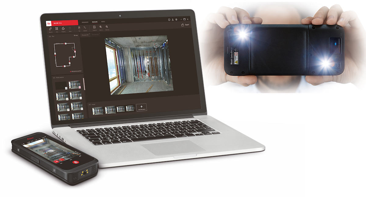 Die professionelle, bildbasierte Messlösung ist nicht nur in einem Gehäuse in der Grösse eines Smartphones untergebracht, sondern nutzt auch Wisch- und Zoom-Gesten für die Bedienung, wie sie bei Smartphones und Tablets gebräuchlich sind. Der Anwender nimmt einfach ein Bild auf, wie er es von seinem Smartphone gewohnt ist und kann dann direkt auf seinem Display die gewünschten 3D-Messungen erstellen. Erweiterte Objektfang-Algorithmen helfen ihm bei der Auswahl des richtigen Pixels für die Messung. Tippt er beispielsweise auf den Rand eines Türrahmens im Bild, springt die BLK3D Software automatisch auf den richtigen Pixel. Tippt er auf die gegenüberliegende Kante des Türrahmens wird die erstellte Messung angezeigt. Man kann die erstellten Bilder später auch noch für weitere Messungen nutzen. Mit dem Leica BLK3D lassen sich nicht nur CAD-fähige Grundrisse erstellen, sondern auch vorhandene importieren und mit der Situation vor Ort abgleichen.