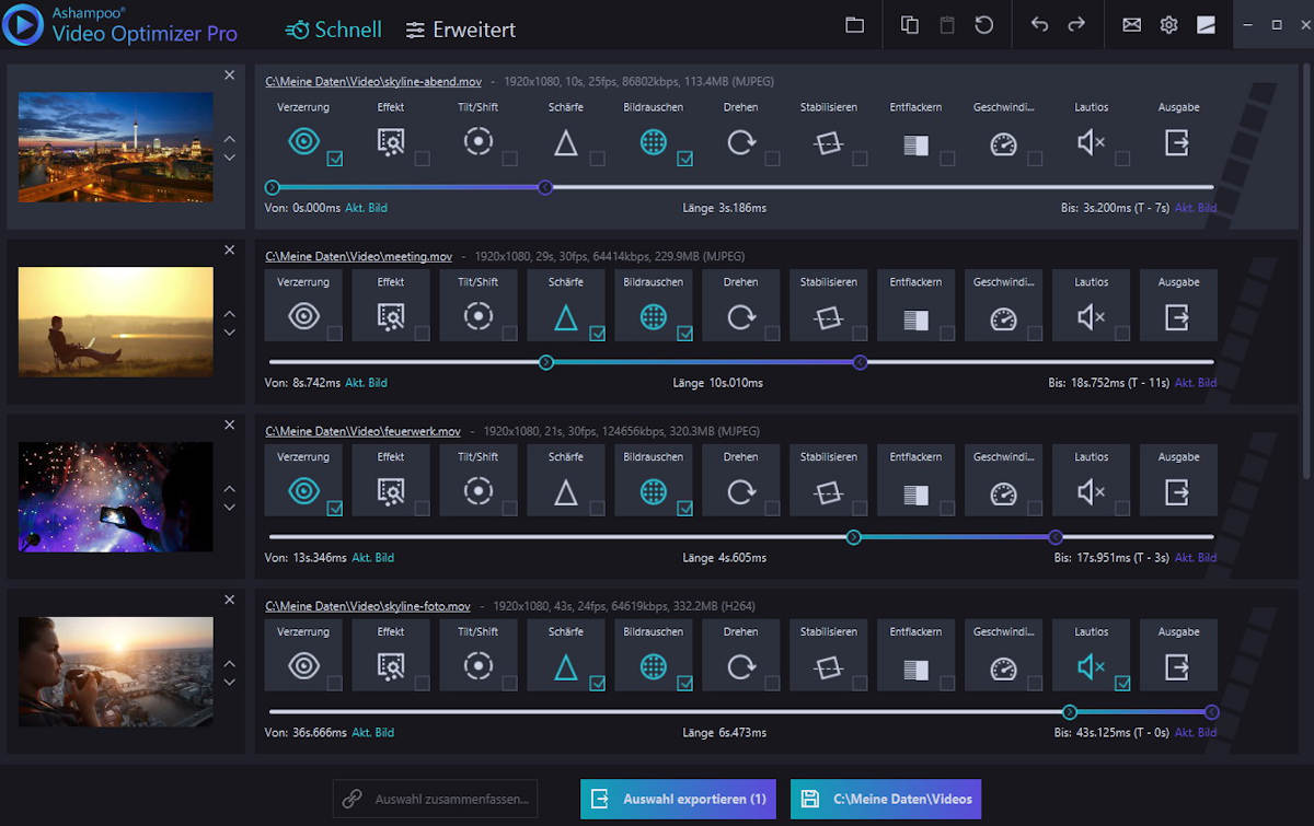 Das sind die Schwerpunkte von Ashampoo Video Optimizer Pro