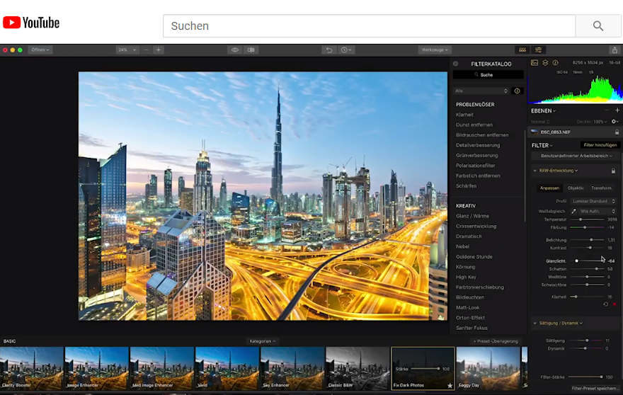 Welche Möglichkeiten das Programm bietet und wie man damit umgeht, siehst Du in diesem YouTube-Video «Luminar für Einsteiger»: