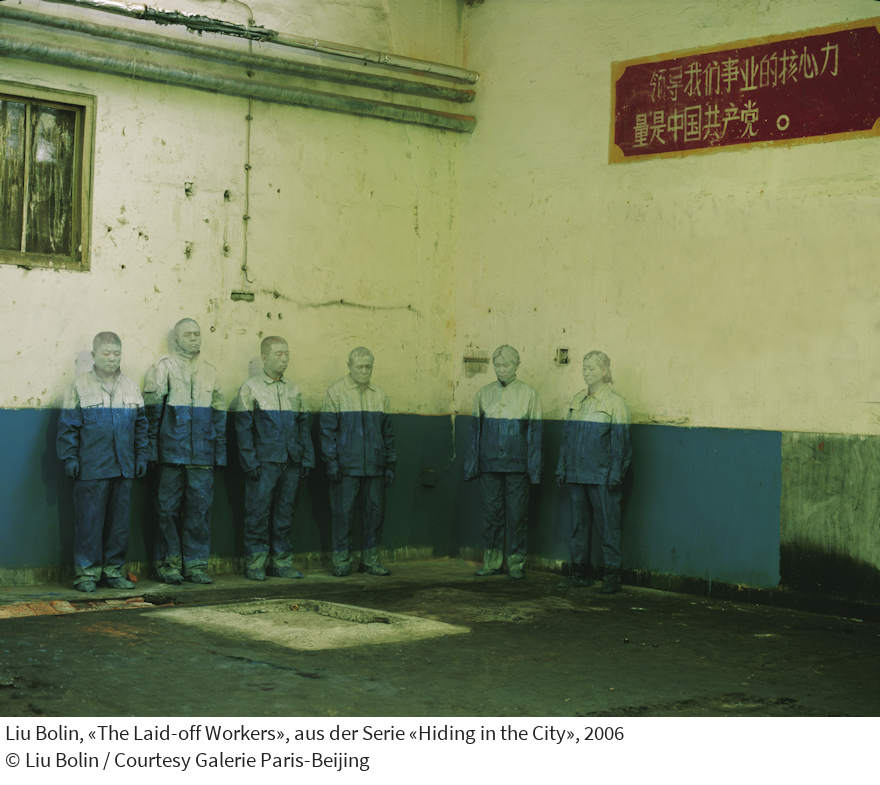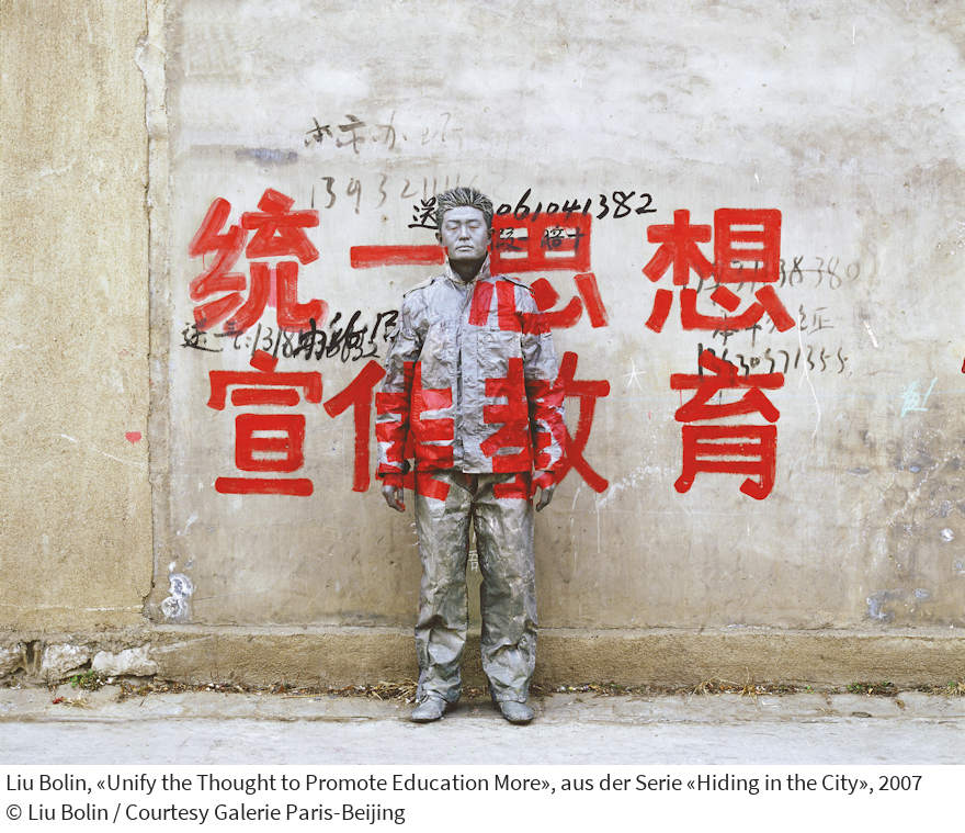 Der Bildhauer, Performancekünstler und Fotograf Liu Bolin – auch «der unsichtbare Mann» genannt – zeigt in dieser retrospektiv angelegten Schau ein aussergewöhnliches Ensemble von Fotografien, die zwischen 2005 und 2017 in China entstanden sind. Indem er den Betrachter herausfordert, zu erraten, wo sich der Körper des Künstlers im Bild versteckt, erzeugt Liu Bolin einen ungewöhnlichen Spiegeleffekt hin zu demjenigen, der ihn ansieht.