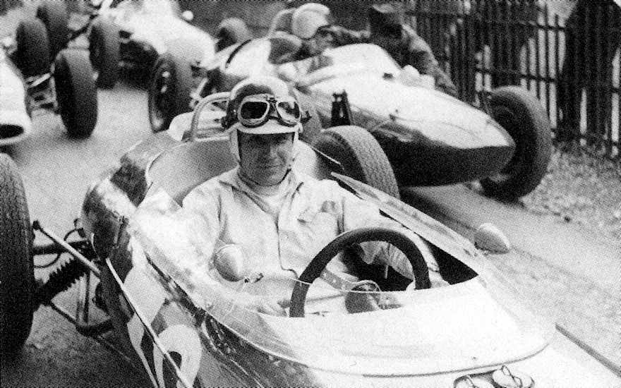 Fahrer in Warteposition, Bergrennen Kriens-Eigenthal, vermutlich 1966, aus: ACS aktuell, Auto + Mobil, 87. Jg., 4-13 / Dez. 2013. Bildarchiv René Hediger