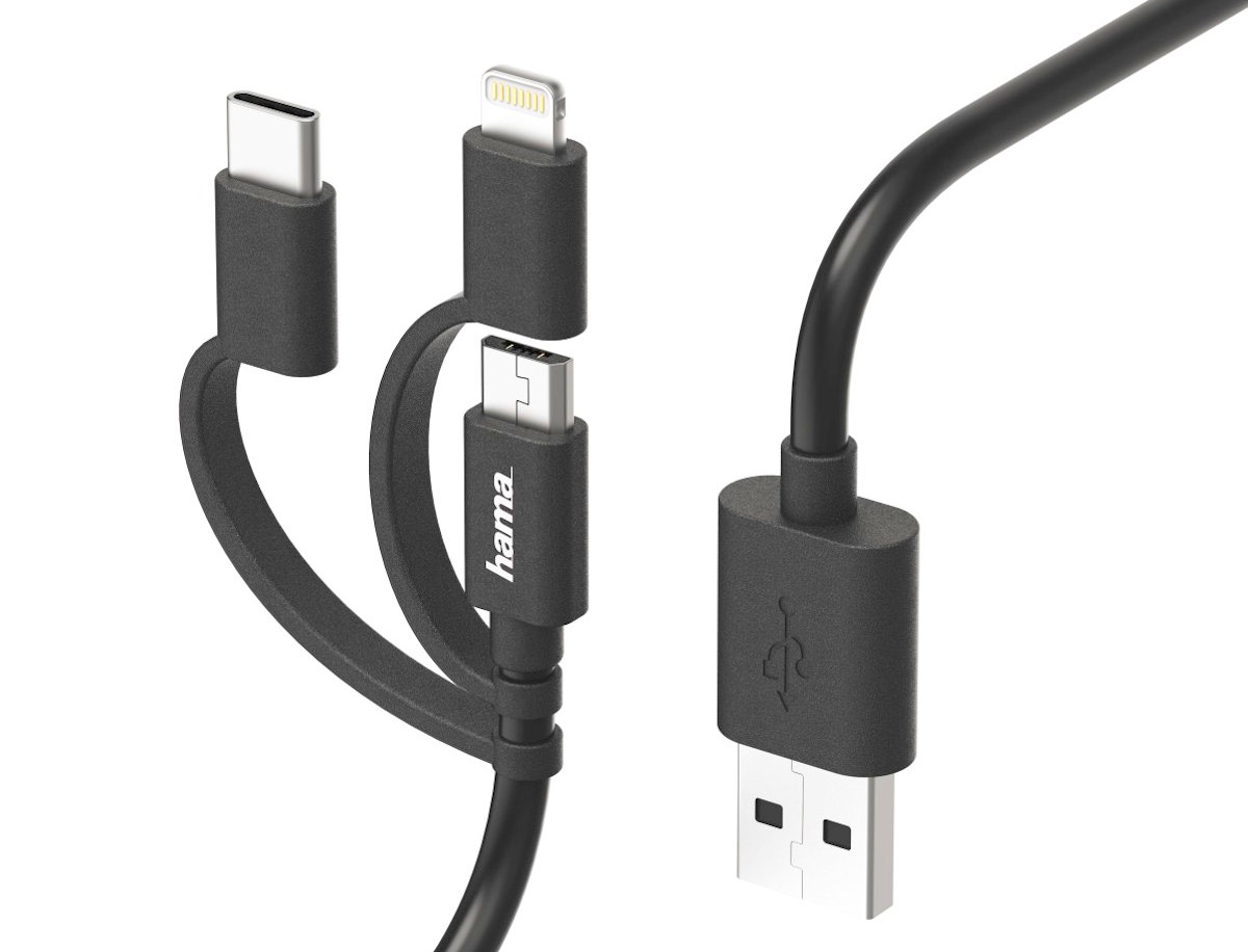 Je mehr technische Geräte man zu Hause hat, desto mehr Ladekabel liegen herum. Von Hama gibt es jetzt ein 3in1-Kabel, mit dem das Problem für USB-Type-C, Lightning- und oder Micro-USB-Anschlüsse ganz einfach gelöst wird.