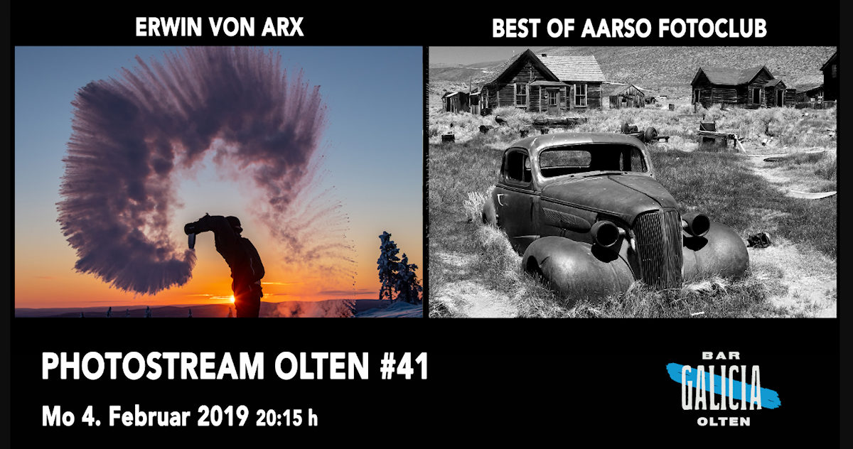Heute Abend zeigt Erwin von Arx auf der Leinwand der Galicia Bar Einblicke in sein langjähriges, fotografisches Schaffen und der sehr aktive und innovative Fotoclub AARSO aus Zofingen zeigt eine Zusammenstellung der besten Bilder seiner Mitglieder.