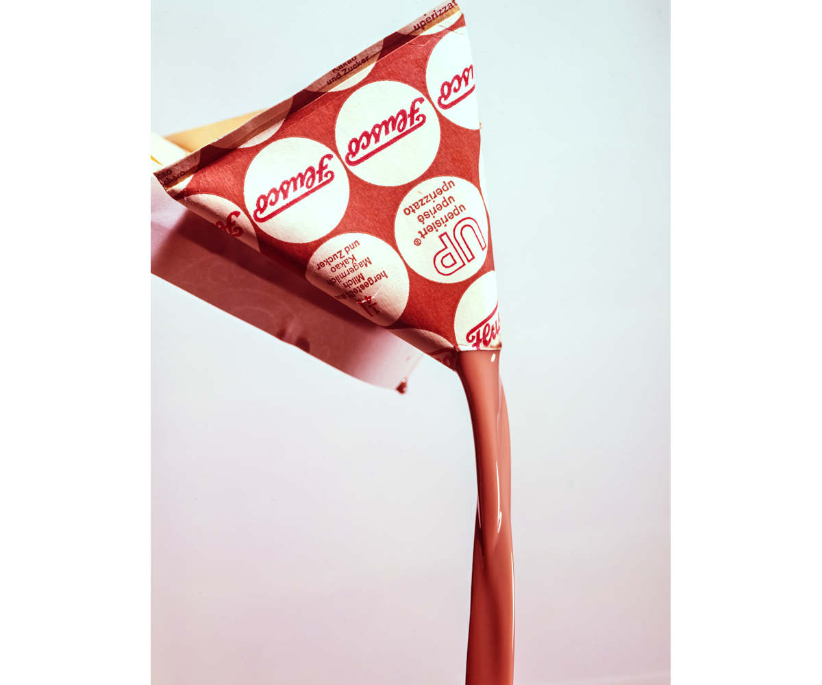 Beat Jost, Flusco Schokodrink ausfliessend, Verbandsmolkerei, Bern, Werbeagentur Grimm, Bern, 1967, © Archiv Beat Jost