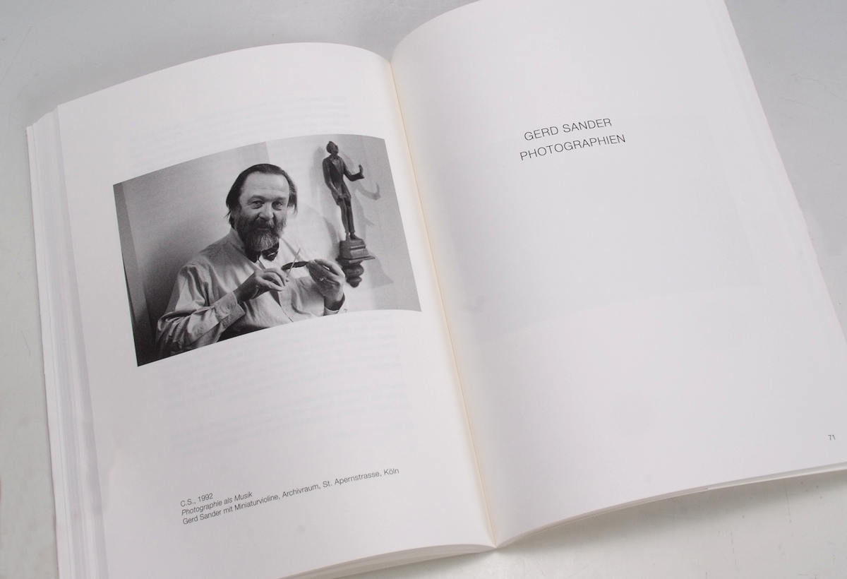 Diese Zeugnisse und eine biografische Skizze von Gerd Sander werden nun erstmals publiziert, gleichzeitig wurden eigene Bildwerke exklusiv für die Publikation ausgewählt. Sie stammen aus den 50er, 60er und 70er Jahren des letzten Jahrhunderts, als Gerd Sander in Köln Fotograf war. Schon sein Vater übte diesen Beruf aus und auch sein berühmter Grossvater August Sander (1876–1964). Um ihn geht es vor allem. Er ist längst überall dort präsent, wo es um Porträtkunst in Schwarzweiss geht.