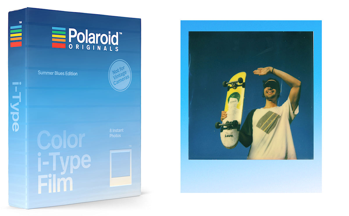 Gleichzeitig mit den beiden neuen OneStep-Kameras Bringt Polaroid Originals den neuen i-Type Film «Summer Blue Edition». Das Filmpack enthält 8 Bildeinheiten, deren Ränder nicht weiss sind, sondern in verschiedenen Blautönen «eine sommerliche Frische ausstrahlen». Der Film passt für alle i-Type- und 600er-Kameras. Das Bild ist unter normalen Raumtemperstur-Bedingungen in 10 bis 15 Minuten ausentwickelt. Zur Lagerung ist die Kühlschranktemperatur empfohlen (nicht tiefkühlen!), doch beträgt die ideale Einsatztemperatur 13 bis 28°C.