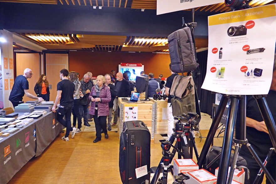 Dass die Fokus Days dieses Jahr in Morges am Genfersee stattfinden, hat seinen Grund vor allem darin, dass die Erreichbarkeit wesentlich besser und das Einzugsgebiet zwischen Lausanne und Genf viel grösser ist. Es verwundert deshalb nicht, dass gleich von Anfang an relativ viele Besucher zu verzeichnen waren, die nicht zuletzt auch von der Möglichkeit Gebrauch machen wollen, dass man an den meisten Ständen Kameras oder Objektive zum Testen ausleihen kann. Einfach Identitätskarte abgeben und eigene Speicherkarte einstecken …