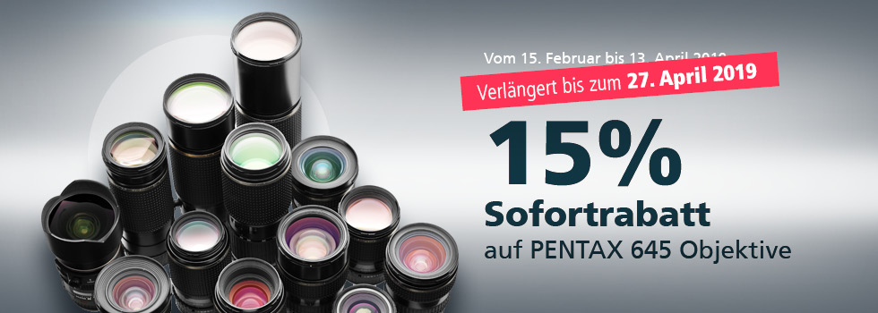 Ebenfalls mit zum Angebot gehört eine Preisermässigung von 15% auf alle Objektive zum Pentax 645 System.