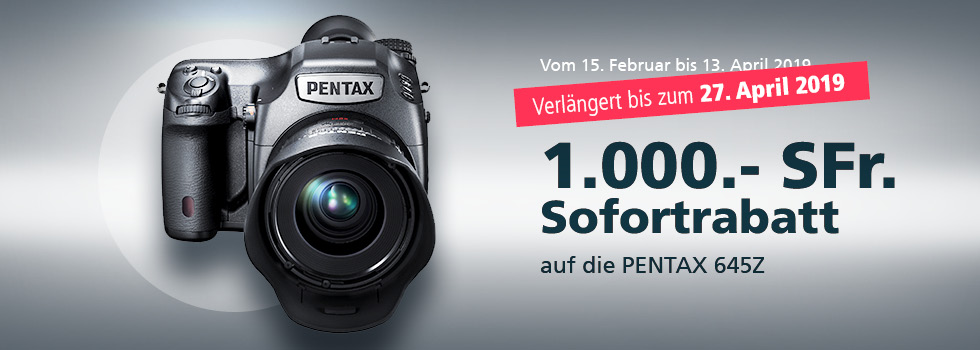 Die Frühjahrsangebote von Ricoh-Pentax haben bereits Tradition. Die diesjährigen Promotionen laufen vom 15. Februar bis 13. April und werden jetzt um zwei Wochen bis 27. April 2019 verlängert. Die Aktionen betreffen die APS-C und Vollformat-Spiegelreflexkameras bis hin zum Mittelformatmodell 645Z und dessen Objektive.