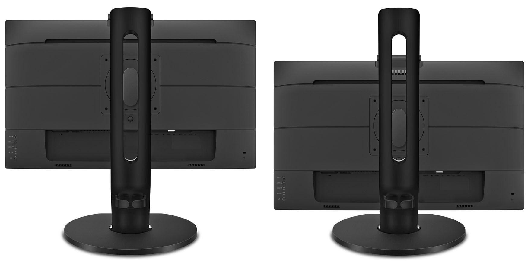 Rückseite des Philips 329P9H, der sich nicht nur in der Höhe verstellen lässt, und ein Kabelmanagementsystem enthält, um zusammen mit dem integrierten USB-Dock das Kabelwirrwar am Arbeitsplatz zu minimieren.
