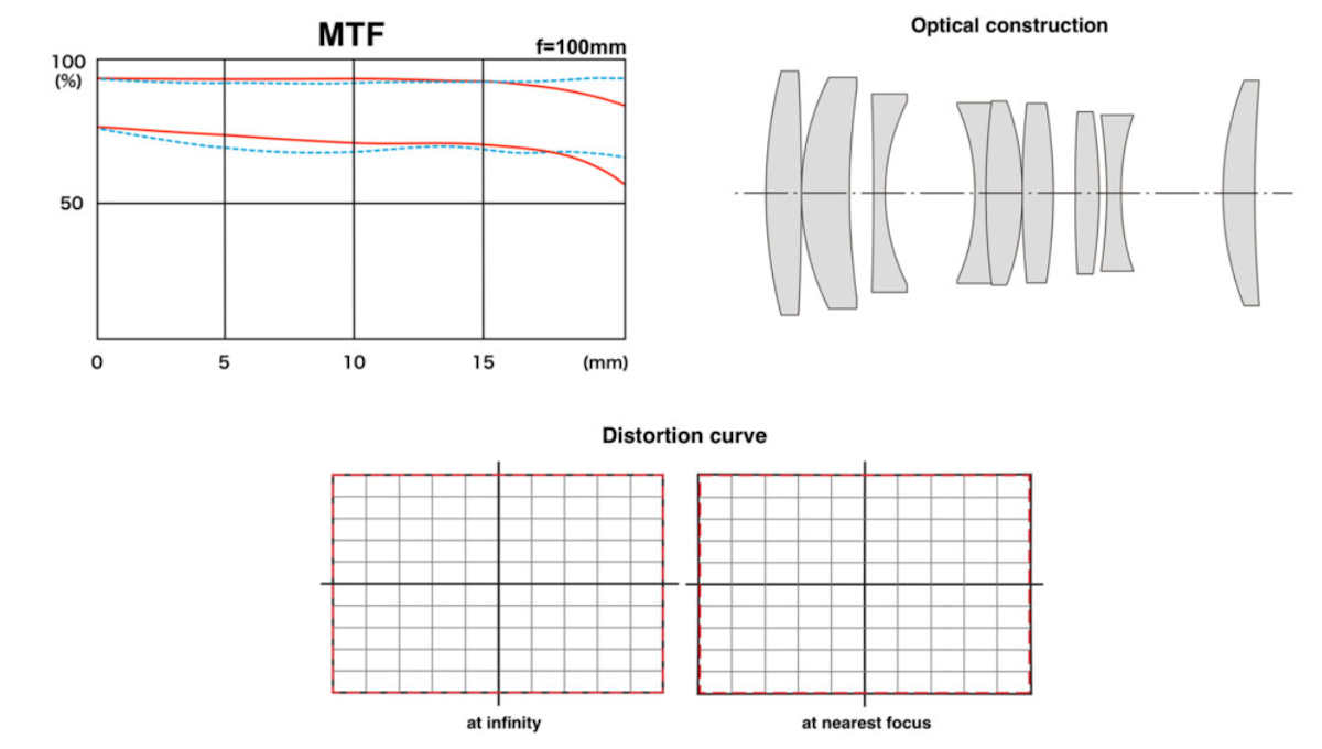 Das Objektiv mit Abbildungsmassstab 1:1 ist in der Lage, Objekte und Motive in ihrer natürlichen Grösse aufzunehmen. Der Objektiv-Prozessor der 100mm Festbrennweite kommuniziert über elektronische Kontakte mit der Kamera und versorgt diese mit optischen Korrekturdaten, wie Entfernung, Blende sowie EXIF-Daten.