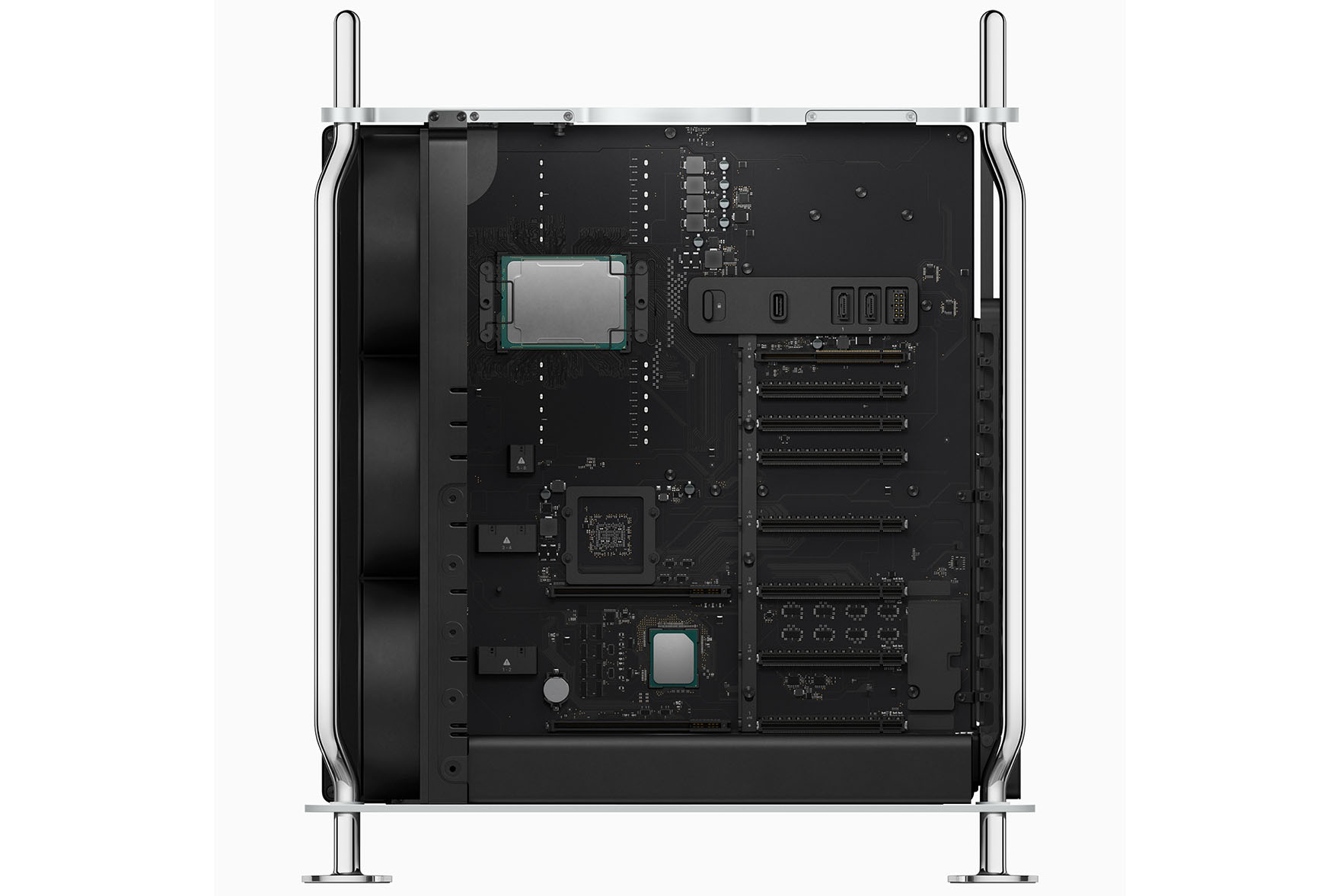 Der neue Mac Pro wurde für maximale Leistung, Erweiterung und Konfigurierbarkeit entwickelt. Er verfügt über Xeon-Prozessoren auf Workstation-Niveau mit bis zu 28 Kernen, ein leistungsstarkes Speichersystem mit einer Kapazität von 1,5 TB, acht PCIe-Erweiterungssteckplätzen und einer Grafikarchitektur mit der leistungsfähigsten Grafikkarte der Welt. Im gleichen Zuge wird Apple Afterburner vorgestellt, eine zukunftsweisende Beschleunigerkarte, die die gleichzeitige Wiedergabe von drei 8K ProRes Raw-Videostreams ermöglicht.