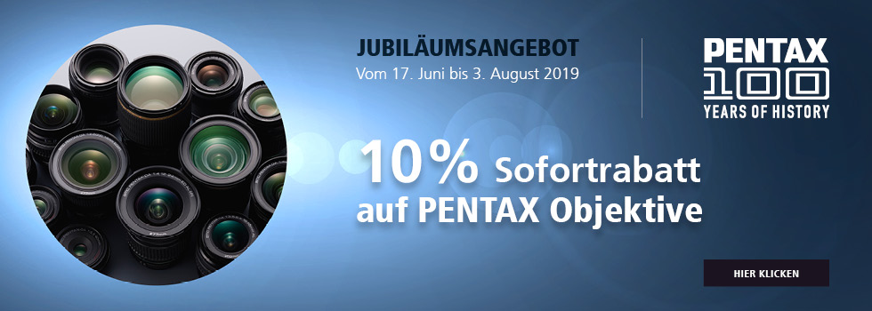 Die Gelegenheit ist günstig, das Objektiv-Sortiment zu Ihrer Pentax Spiegelreflexkamera auszubauen. Pentax gewährt auf allen Objektiven einen Sofortrabatt von 10%.