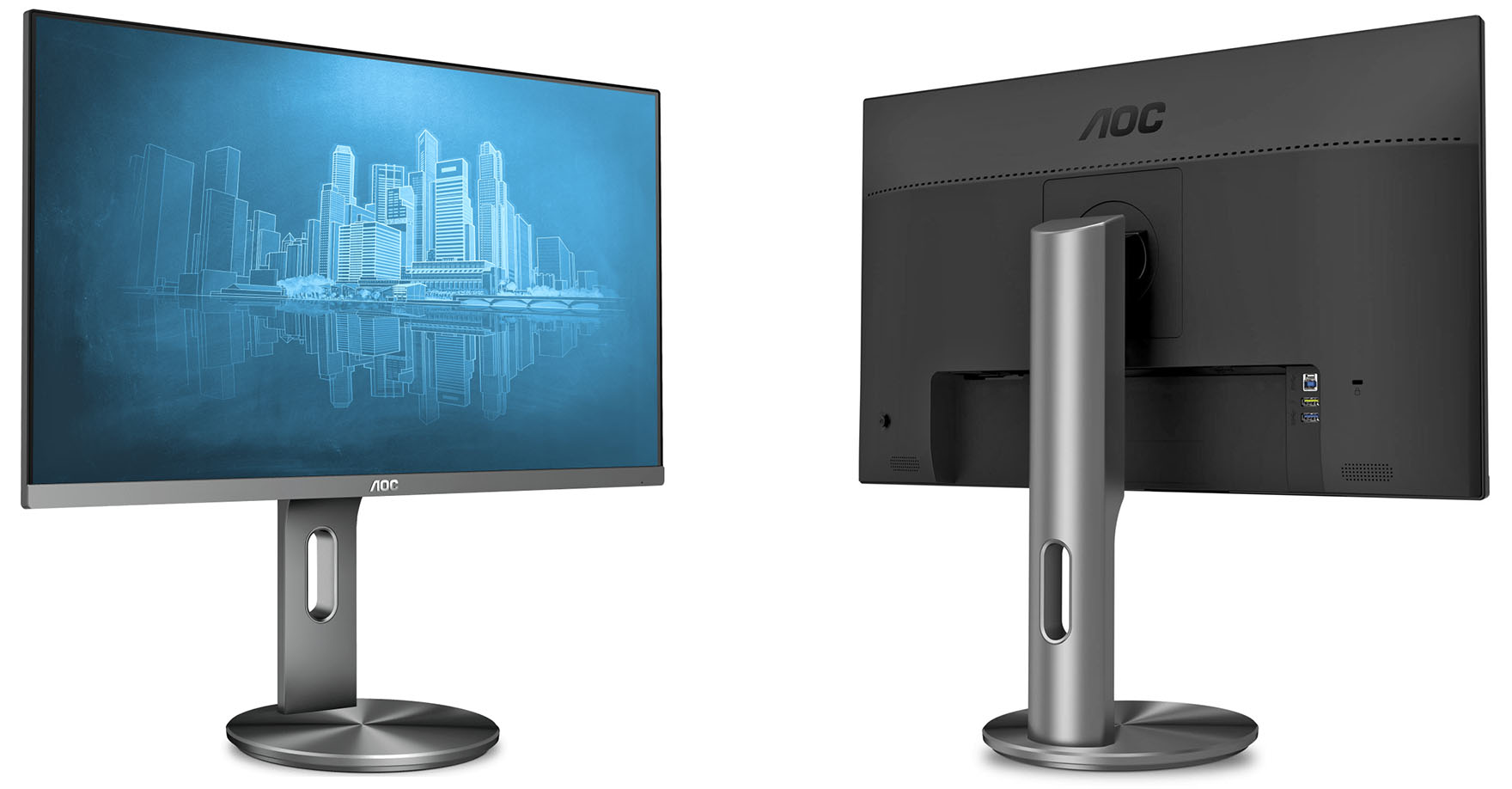 So wie alle Monitore der 90-Serie von AOC verfügt auch der U2790PQU über ein Silbernes Gunmetal-Finish, das sich von den üblichen schwarz oder grau dominierten Displays unterscheidet. Das 27″ grosse Panel in Kombination mit dem nahezu rahmenlosen Design schafft eine grosse Bildschirmfläche und bietet ein kompaktes Erscheinungsbild. So nimmt der 27 Zöller wenig Platz auf dem Schreibtisch ein. Zudem erlaubt das rahmenlose Design den Aufbau nahtloser Multi-Monitor-Setups für produktiveres Arbeiten.