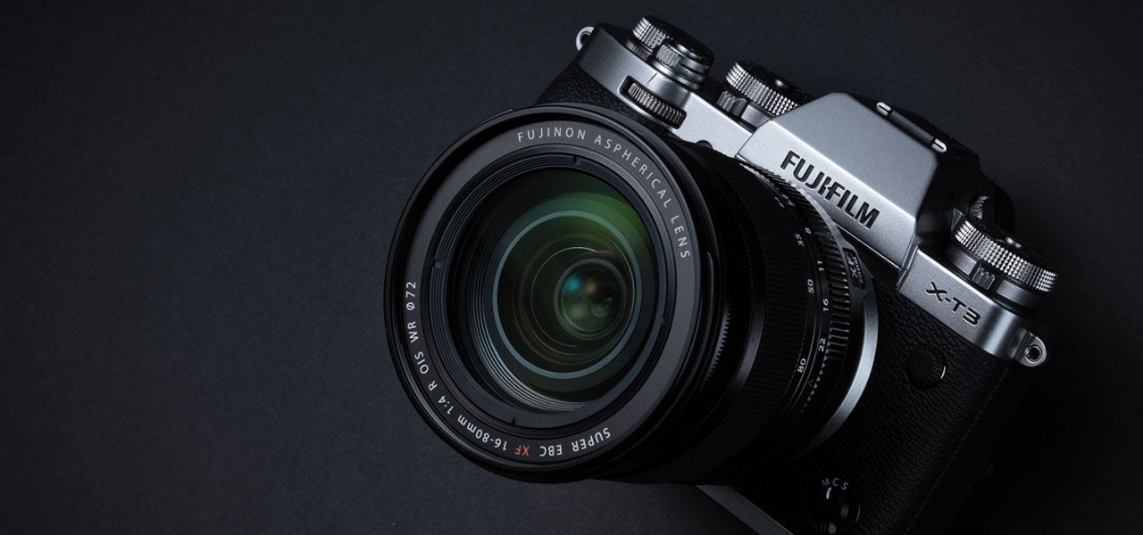Das neue Fujinon XF 4/16-80mm R OIS WR hier an einer X-T3 ist einuniverselles Zoom für die spiegellosen Systemkameras der X-Serie.