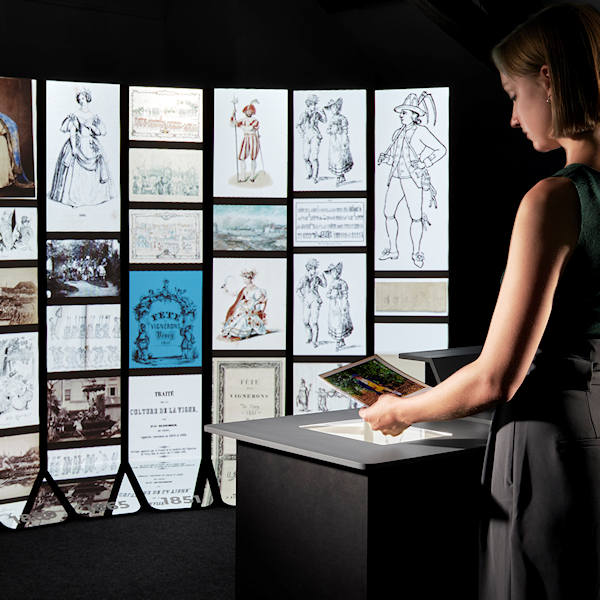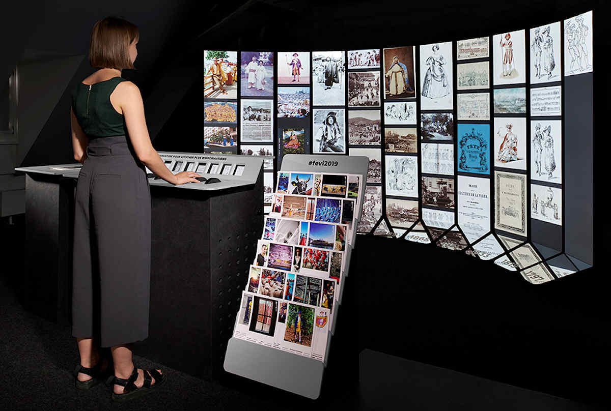 Der Besucher wird vom ersten Moment an mit Ungewohntem überrascht: Bilder aus den sozialen Netzwerken verwandeln sich plötzlich in reale Karten, die in der Hand des Besuchers eine materielle Dimension bekommen. Auf einer Leuchtplatte platziert, rufen sie auf einem immersiven Bildschirm die Vorstellung einer Sammlung alter Bilder hervor und ermöglichen so eine Zeitreise bis ins 18. Jahrhundert. Die guten alten Fotos, die an vergangene Zeiten erinnern, sind digital geworden. Die Besucher können sie anschauen und scrollen. Handfeste Gegenwart, digitale Vergangenheit: Die Installation hinterfragt unser Verhältnis zu Zeit, Authentizität und Gegenständlichkeit.