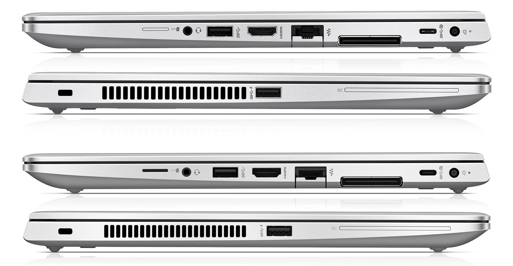 Die identischen Seiten- bzw. Profilansichten des HP EliteBook 735 G6 (oben) und des 745 G6 (unten) mitsamt den diversen Ports