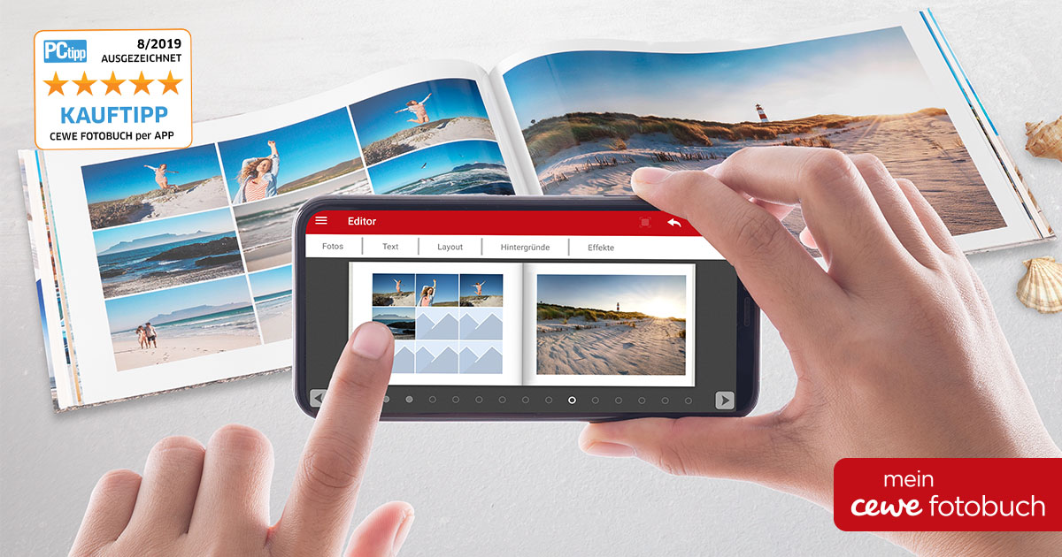 Jedes Jahr in der Sommerzeit widmet sich die Schweizer Computerzeitschrift «PCtipp» einem Thema rund ums Fotobuch, weil dann für diese Produkte Hauptsaison ist. Aber ein Trend ist neu: Man lädt sich die Ferienfotos nicht mehr zu Hause auf den Computer und erstellt dann sein Fotobuch, sondern man gestaltet das Erinnerungsalbum womöglich noch während den Ferien gleich auf dem Smartphone. Die dazu verfügbaren Apps sind in den letzten Jahren immer benutzerfreundlicher geworden, und so ist es laut Test des PCtipp möglich innerhalb von 10 bis 20 Minuten ein 24 bis 100 Seiten starkes Fotobuch auf dem Handy zu gestalten. Und bereits vier bis sieben Tage später, kurz nach dem Urlaub, bringt der Pöstler das fertige Werk nach Hause.