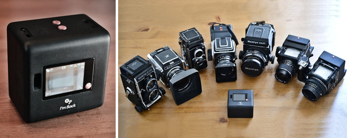 Mit dem «I’m Back» Digitalrückteil werden Kameras wie Mamiya C330, Zenza Bronica S, Rolleiflex, Hasselblad, Mamiya RB67, Mamiya 645, Bronica Etrsi und andere zu digitalem Leben erweckt.