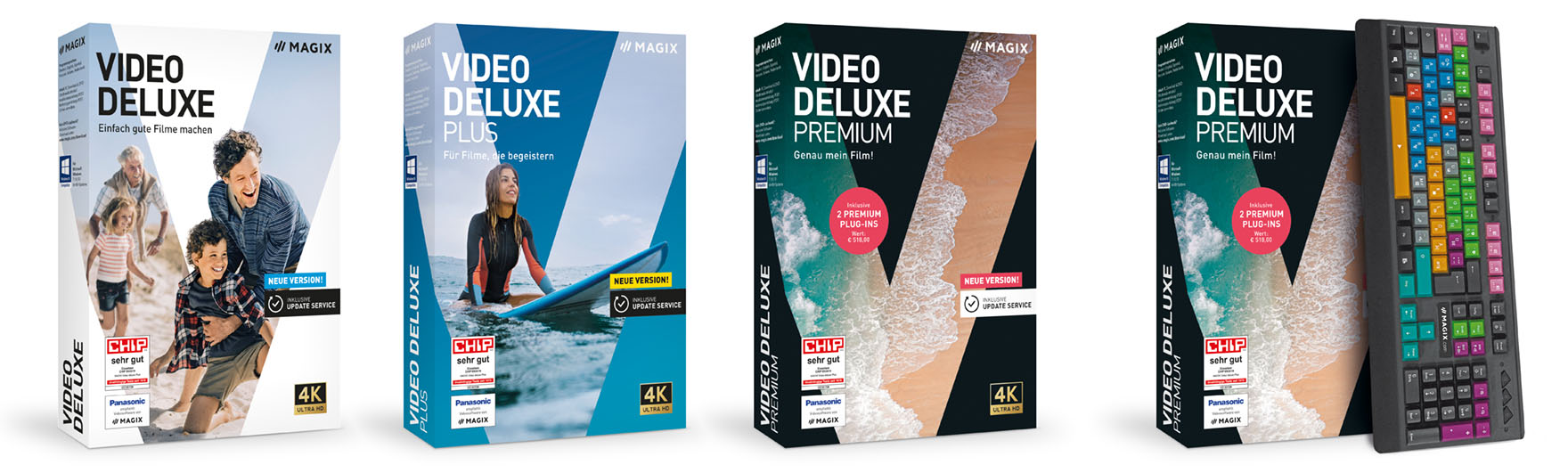 Die Variante Video deluxe Control für 149.99 Euro entspricht der Premium-Edition und enthält eine Videoschnitttastatur – allerdings mit deutscher statt schweizerischer Belegung. Diese Version ist nicht in der Schweiz verfügbar.