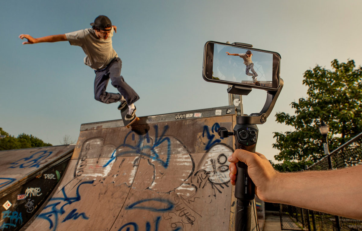 Jede Funktion des Gimbal lässt sich mit Hilfe der dazugehörenden kostenlosen App auf den Tasten beliebig konfigurieren. Durch Drücken einer der anpassbaren Tasten kann zwischen Funktionen wie Roll Following, Face Tracking, automatischer Drehung der Ausrichtung des Smartphones von 180 bis 90 Grad und zurück gewechselt werden.