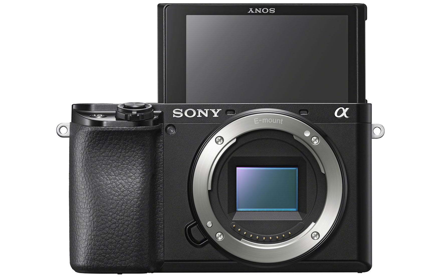 Beide E-Mount-Kameras (hier dien A6100) sind mit einem 24.2 Mpx-Sensor im APS-C-Format ausgestattet, wobei die 425 Punkte des Phasendetektions-Autofokus  rund 84 Prozent des Sensors abdecken. Natürlich lässt sich der Bildschirm für Selphies um 180 hochklappen und so nach vorn richten.