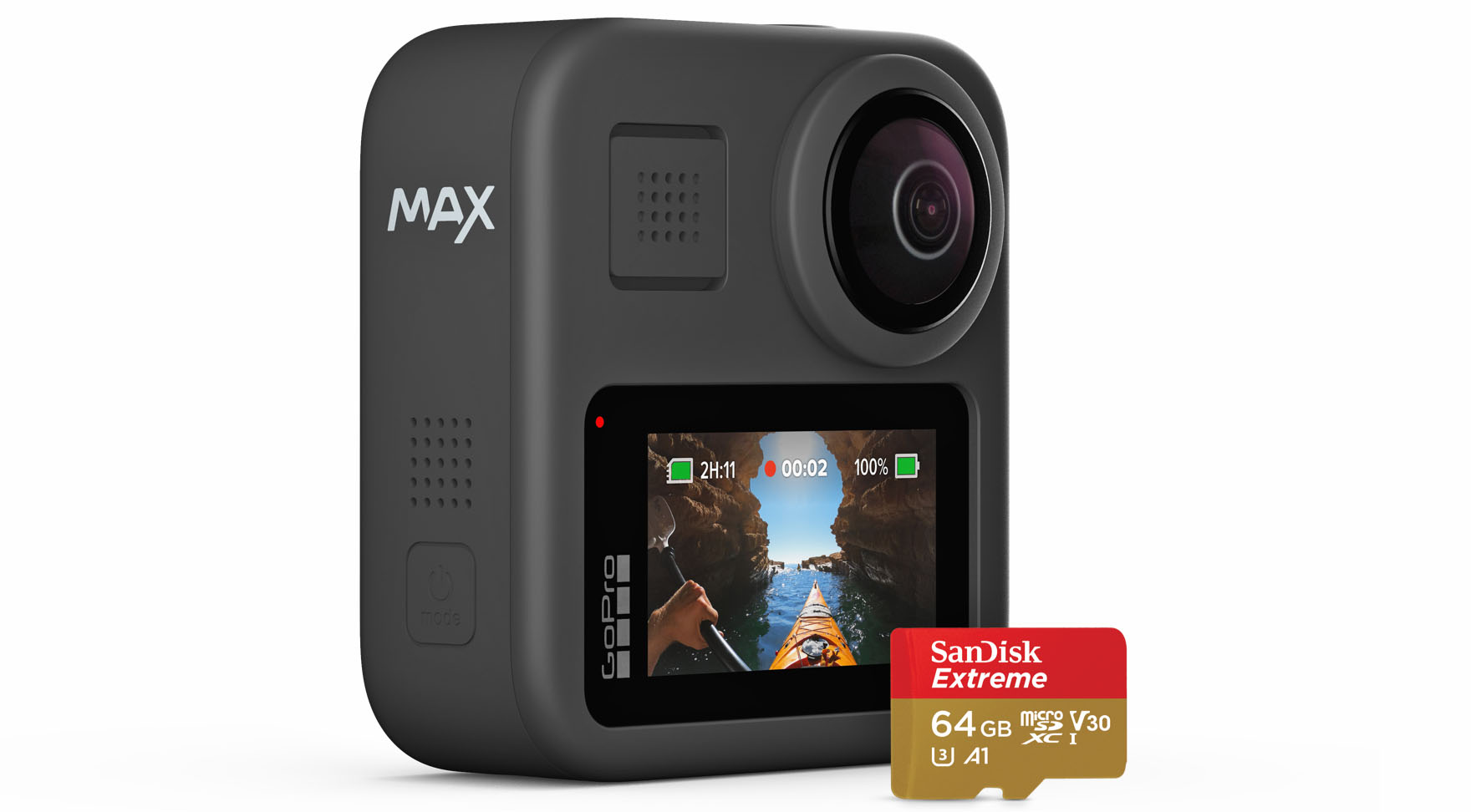 Die GoPro MAX ist eine GoPro Kamera mit zwei Objektiven, die sich durch ihre Vielseitigkeit auszeichnet – gleichsam drei Kameras in einer. Verwende die MAX als wasserdichte, maximal stabilisierte Einzelobjektiv Hero-Kamera, als 360°-Kamera mit Doppelobjektiv oder als Vlogging-Kamera der nächsten Generation mit integriertem Display auf der Vorderseite sowie einem Richtmikrofon für beste Audioqualität.
