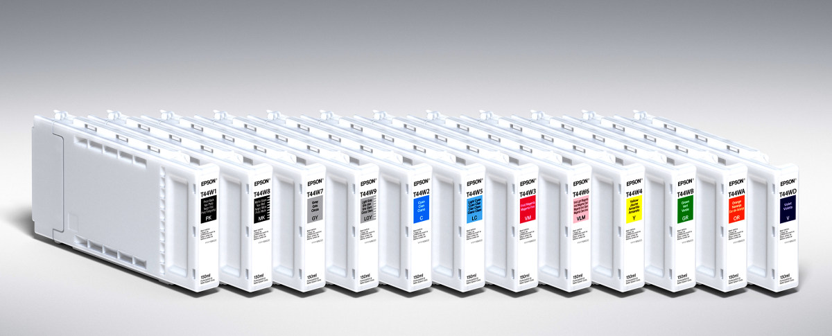 Die neuen SureColor Drucker verwenden den neu entwickelten UltraChrome Pro12-Tintenset, das auf der K3-Technologie aufbaut und diese mit oranger, grüner und violetter Tinte ergänzt.