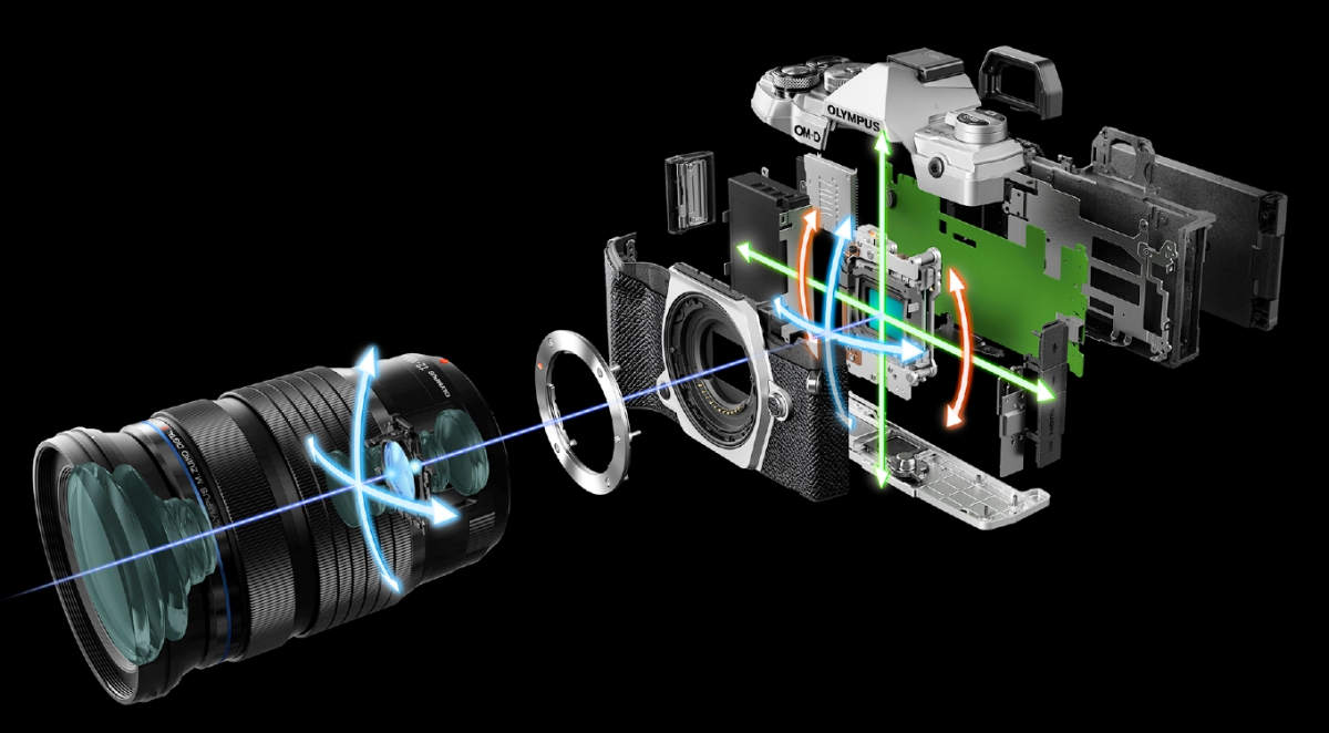 Das neue 5-Achsen-Bildstabilisierungssystem ermöglicht eine Kompensationsleistung von bis zu 5,5 EV. Basierend auf den Informationen des hochempfindlichen Gyrosensors und der Bildanalyse steuert der TruePic VIII Bildprozessor die Stabilisator-Einheit. Zusätzlich zur Winkelabweichung und Shiftbewegung werden Rotationsbewegungen korrigiert. In Kombination mit der integrierten Sync-IS-Funktion einiger Objektive, erhöht sich die Bildstabilisationsleistung der OM-D E-M5 Mark III auf bis zu 6,5 EV-Stufen.
