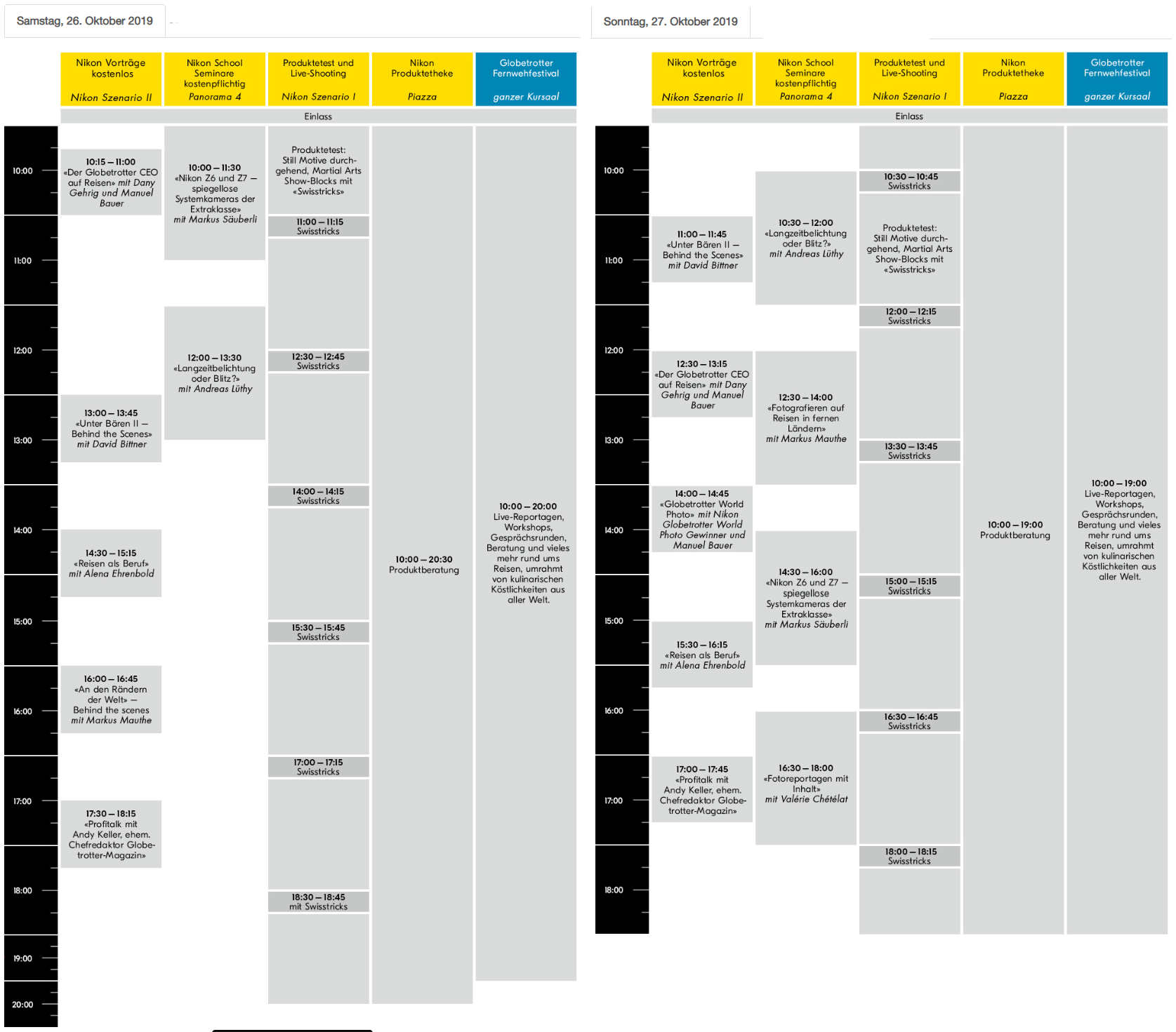 Im Seminar der «Swiss Press Photo Award» Gewinnerin Valérie Chételat erfahren Sie, auf was es in der modernen Reportage-Fotografie ankommt und wie man es mit Bildgeschichten schafft, sich aus der Masse der «schönen Urlaubsbilder» hervorzuheben. Weiter lernen Sie an den Seminaren der Nikon School Kursleiter, worauf es beim Fotografieren und Filmen mit einer spiegellosen Systemkamera (Nikon Z) ankommt oder wann und wie Langzeitbelichtung oder Blitz richtig eingesetzt werden. Weiter gibt es Fotografeninterviews und spannende Diskussionsrunden.