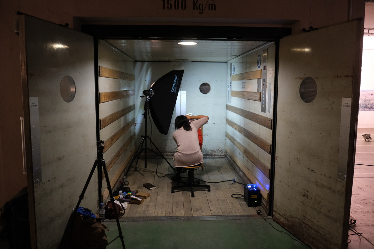 Die Ausstellung ist über zwei Stockwerke verteilt. Das erste Obergeschoss bietet neben dem Bar-, Verpflegungs- und Loungebereich einen klassischen Ausstellungssektor, in dem die Arbeiten von Werner Bischof, Akosua Viktoria Adu-Sanyah, Denise Haschke, Ursula Müller, Roshan Adhihetty und Tom Kummer zu sehen sind. Severin Nowacki zeigt hier einige seiner Projekte als Reportagefotograf für Zeitungen und Theater. Durchbrochen wird diese klassische Präsentation mit einer Diaprojektion von Hennric Jokeit mit einem legendären Kodak Carousel-Projektor, welche an die gute alte analoge Zeit erinnert. Den Warenlift nutzt Akosua Viktoria Adu-Sanyah für ein Fotostudio.