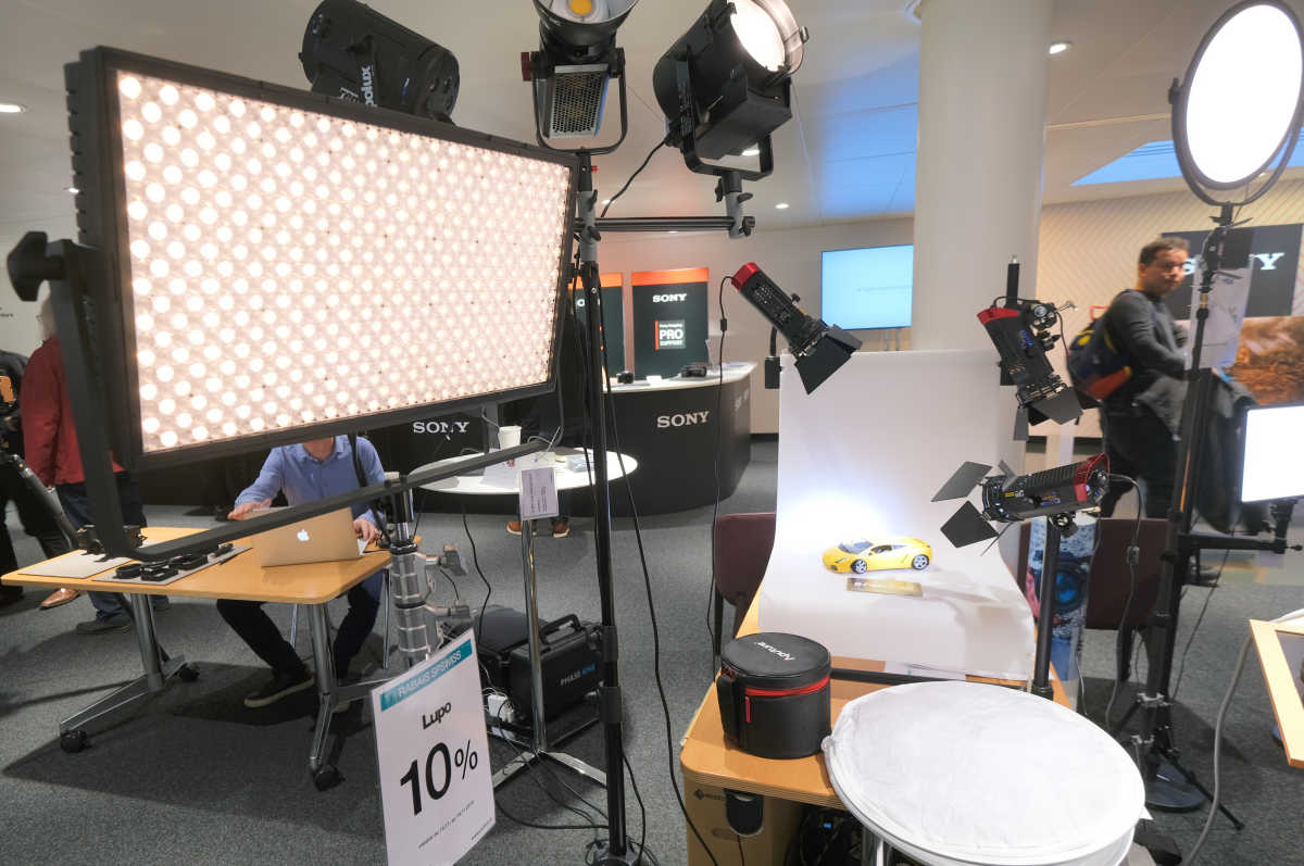 Gastgeberin Profot zeigt an ihrem Stand ein breites Sortiment an professionellem Zubehör, von Beleuchtungssystemen über Taschen und Rucksäcke bis hin zu vielen nützlichen Kleinigkeiten. Schon kurz nach der Eröffnung steht eines fest: Der Salon de la Photo Genève dürfte auch dieses Jahr gut besucht werden.