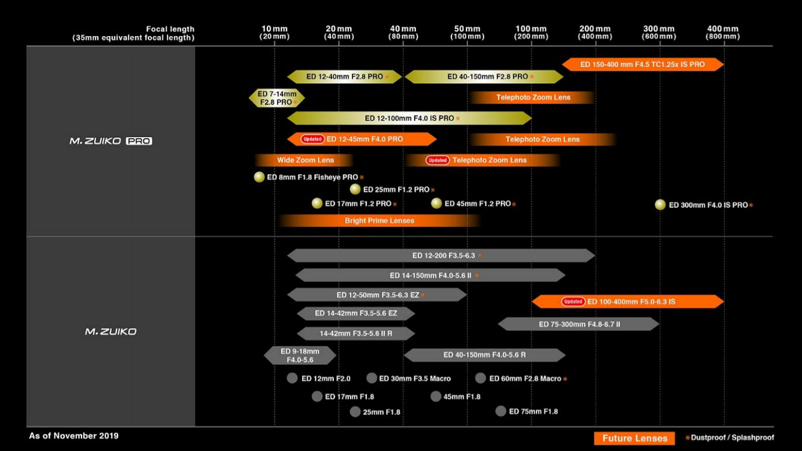 Das neueste Update der Olympus Objektiv-Roadmap verrät: Es wird im nächsten Jahr zwei weitere M.Zuiko Objektive geben – das ED 5.0-6.3/100-400 mm IS und das ED 4,0/12-45 mm PRO. Zusätzlich befinden sich drei weitere M.Zuiko Telezoomobjektive, ein Weitwinkelzoom und mehrere lichtstarke Festbrennweiten in der Entwicklung.