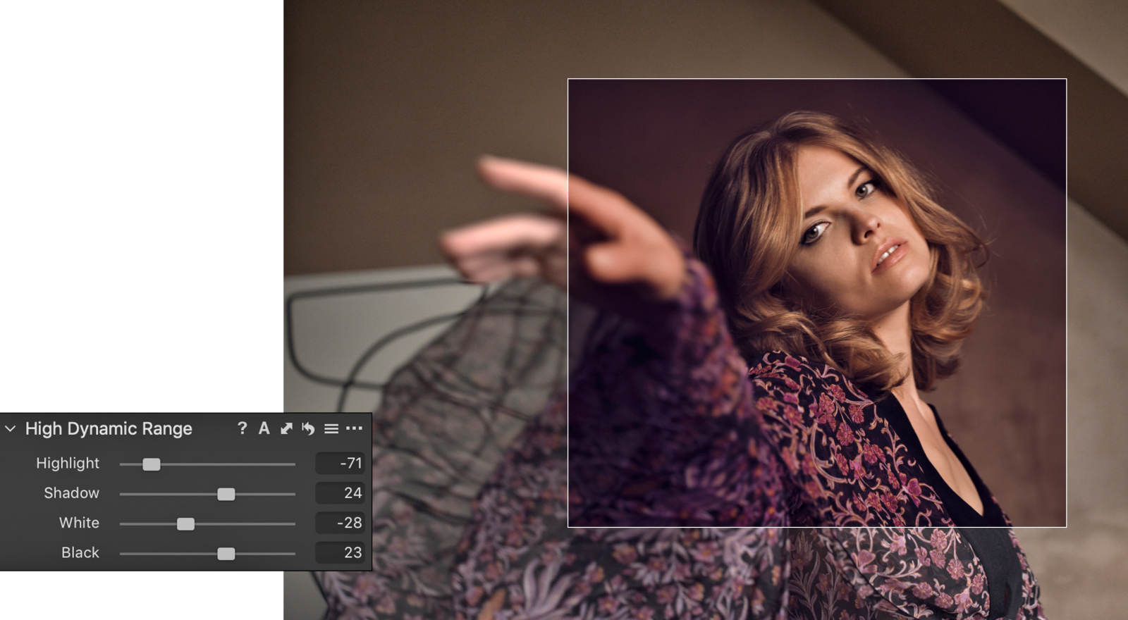 HDR-Werkzeug. Mit dem neuen HDR-Werkzeug können Sie noch mehr aus Kontrasten und Farbtönen herausholen. Stellen Sie Spitzlichter wieder her, verstärken Sie Schatten, verdunkeln Sie Schwarztöne oder verstärken Sie die hellsten Stellen Ihres Bildes – und das alles in nur einem Tool.