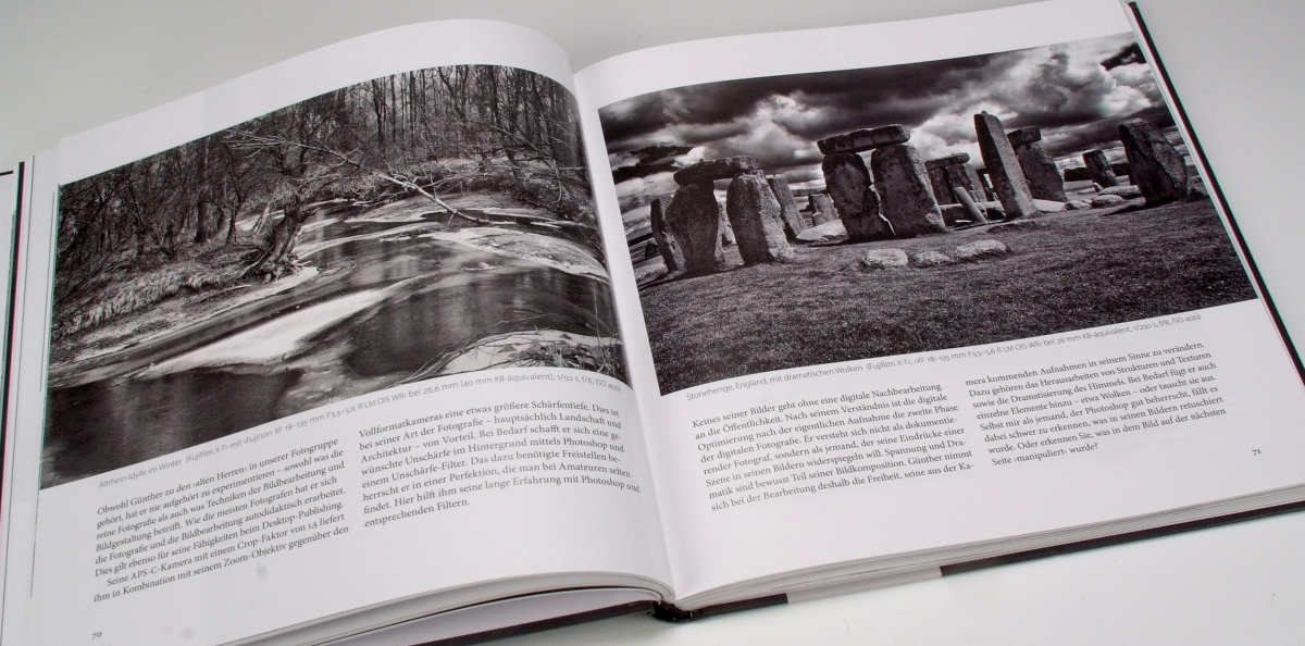 Jürgen Gulbins geht auf jeden einzelnen der sieben Fotografen und ihre Spezialgebiete ein: Magdalena Glück ist auf Porträtfotografie, Natur und Architektur spezialisiert; Edmund Trumpp erweitert mit seiner selbstgebautem Fokus-Stacking-Einrichtung den Schärfenbereich seiner Makroaufnahmen, fotografiert aber auch Tiere und Naturlandschaften gekonnt; Günther Pritzkow ist von Schwarzweiss Landschaften und Tierporträts fasziniert, experimentiert aber auch gerne mit Farbe; Werner Mayer hat sich der Model-Fotografie verschrieben, visualisiert Fantasien und pflegt eine effektvolle Nachbearbeitung; Péter Kurucz liebt die Nacht- und Astrofotografie und bietet als Neurochirurg hoch interessante medizinische Bilder, ganz abgesehen von seinen emotionalen Familienporträts; Autor Jürgen Gulbins ist der Technikfreak der Gruppe, fotografiert aber auch Landschaften, alte Eisenbahnen, macht fantastische Schwarzweiss-Umsetzungen, Composings und andere Experimente; und Alexander Ehhalt ist der einzige Berufsfotograf der Gruppe, führt eine eigene Galerie, gibt Fotokurse, macht Industrieaufnahmen und Reportagen.