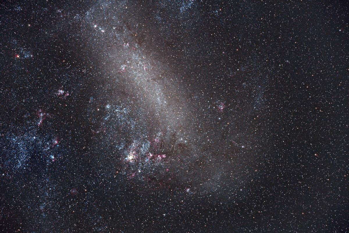 Aufnahme der Magellanischen Wolke von Thomas Hugentobler mit dem StarAdventurers, 300mm Brennweite, F4, ISO 2000, zusammengesetzt aus 14 Aufnahmen à je 3 Minuten.