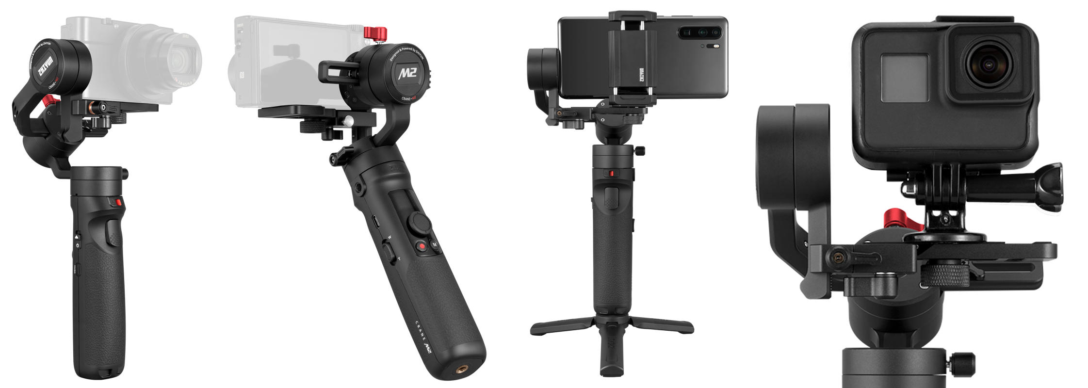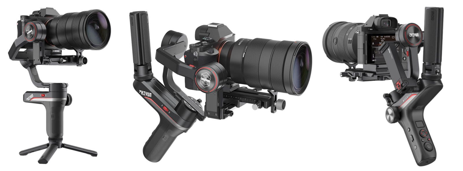 Zhiyun bietet ein breites Sortiment an Gimbals an, die für unterschiedliche Gerätegrössen und vielfältige Einsatzmöglichkeiten konzipiert sind. Gimbal Crane 3 LAB ist das Topmodell für professionelle DSLR- und Kinofilmkameras, das Modell Weebill-S ist für spiegellose und leichte Spiegelreflexkameras geeignet, das neuartige All-in-One-Gimbal Crane-M2 passt zu mehreren Gerätetypen wie kompakte Digitalkameras, leichten spiegellose Kameras, Mobiltelefone und Action-Kameras, während das leichte Smooth-Q2 für angehende Smartphone-Videofilmer ideal ist.