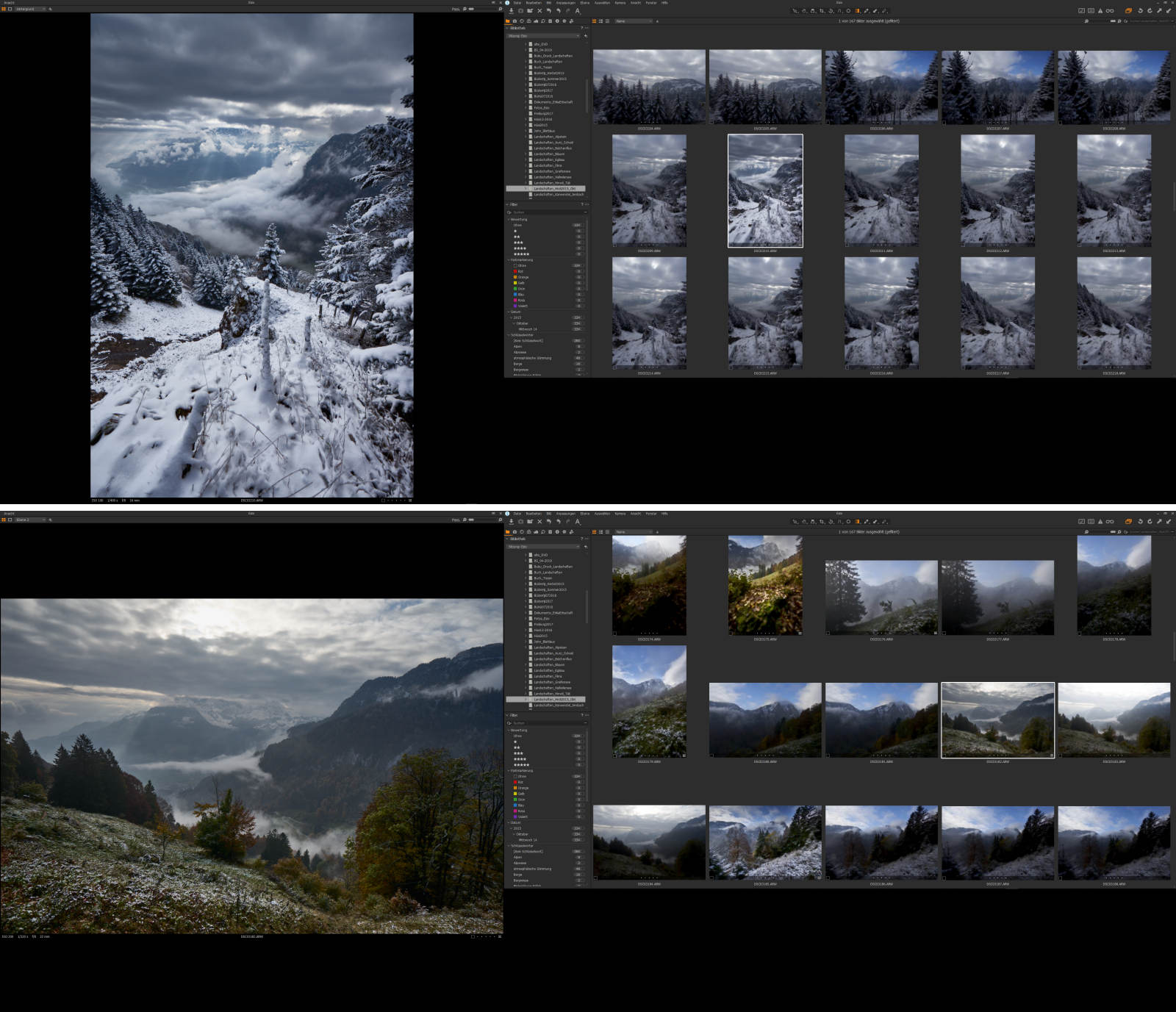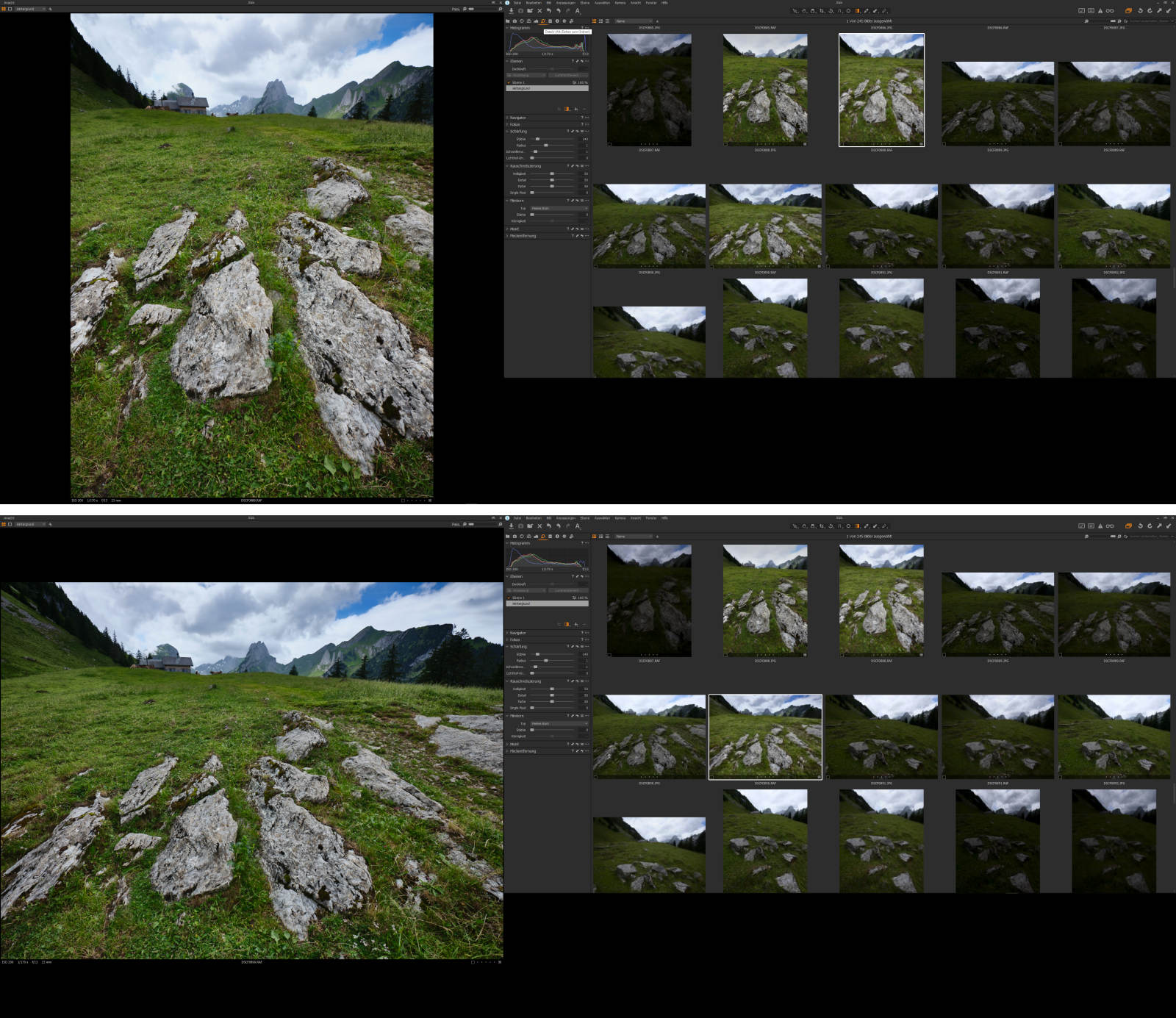 Bilder der Fujifilm GFX50S in Capture One: Je kleiner der Unterscheid zwischen Hoch- und Querformat, desto formatfüllender zeigt sich der quadratische Bildschirm. Die Werkzeugleiste befindet sich auf dem anderen Monitor. Somit lässt sich der quadratische Monitor bildmässig optimal ausnutzen.
