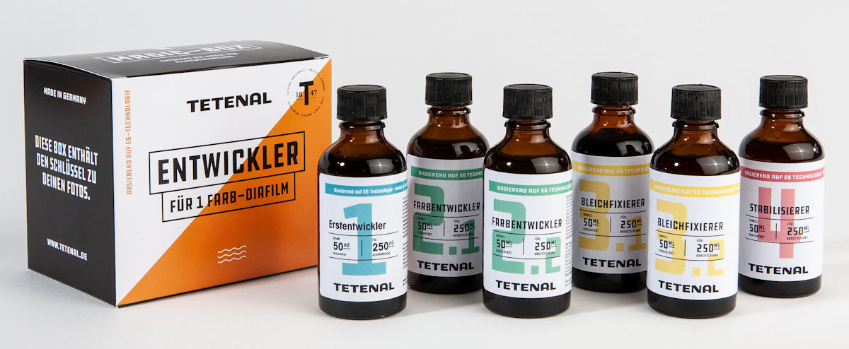 Es gibt sie immer noch, die Entwickler-Kits, um Diafilme, Farbnegativfilme und Farbpapiere selbst zu verarbeiten. Tetenal hat die drei Kits für den E-6 Prozess (für Diafilme), der C-41 Prozess (für Farbnegativfilme) und den RA-4 Prozess für Farbpapiere im Sortiment und Ars-Imago in Zürich oder in deren Online-Shop, verkauft sie. Die Kits sind ideal, um seine Filme selbst zu entwickeln, weil es eilt, weil kein Labor in der Nähe ist, welches diesen Service noch anbietet oder ganz einfach, weil man es einmal selbst gemacht haben möchte.