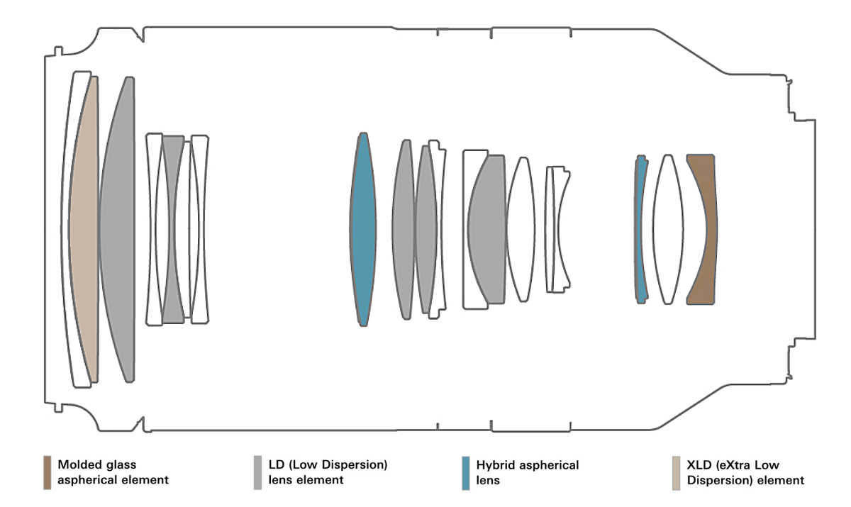 Optisches Design mit Spezialgläsern Das 2,8/70-180mm besteht aus 19 Elementen in 14 Gruppen, darunter sechs XLD- (eXtra Low Dispersion) und LD-Linsenelemente (Low Dispersion) sowie drei GM- (Glass Molded Aspherical) und hybrid-asphärische Linsenelemente. Diese bewirken eine hohe Korrektion der chromatischen Aberrationen und eine hohe Allgemainschärfe bis in die Randzuonen. Das Objketiv ist ausserdem mit der BBAR-G2-Vergütung (Broad-Band Anti-Reflection Generation 2) ausgestattet, welche Geisterbilder und Streulicht minimiert und die Schärfe und Kontrastleistung sowie die kamerabasierte Verzerrungs- und Shading-Korrektur verbessert. Darüber hinaus wird die ausgezeichnete hohe Bildqualität über den gesamten Zoombereich durch verbessert. Zusätzlich kann der Bokeh-Effekt vor allem bei voller Öffnung kreativ in der Porträtfotografie genutzt werden.
