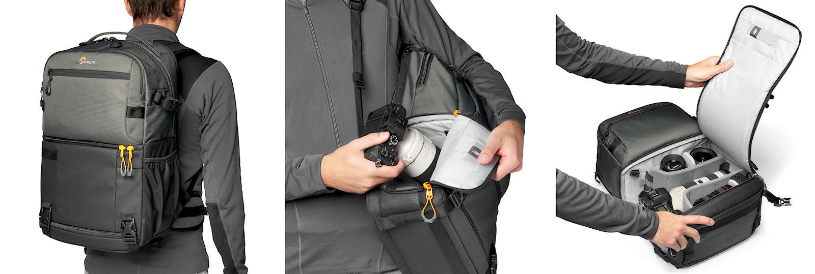 Die dritte Generation der Fastpack-Reihe folgt den Spuren der Premium-Kollektionen von Lowepro, Whistler und FreeLine. Das Ripstop-Aussenmaterial wird nach dem gleichen Verfahren wie die hochwertige Whistler-Serie hergestellt und beschichtet, und bietet maximalen Schutz vor Witterungseinflüssen. Im Vergleich zu den Vorgängermodellen sind die neuen Taschen leichter und kleiner. Damit haben sie die perfekte Passform für moderne spiegellose und DSLR-Kits und gleichzeitig den Look and Feel einer modernen Lifestyle-Tasche. Neben einer Vielzahl an Funktionen ist vor allem ihr günstiger Preis vorteilhaft. Dank der flexiblen Einteilung innerhalb der neuen Rucksäcke lassen sich für Outdoor-Trips die Hälfte für Foto- und die andere Hälfte für persönliche Effekte nutzen.