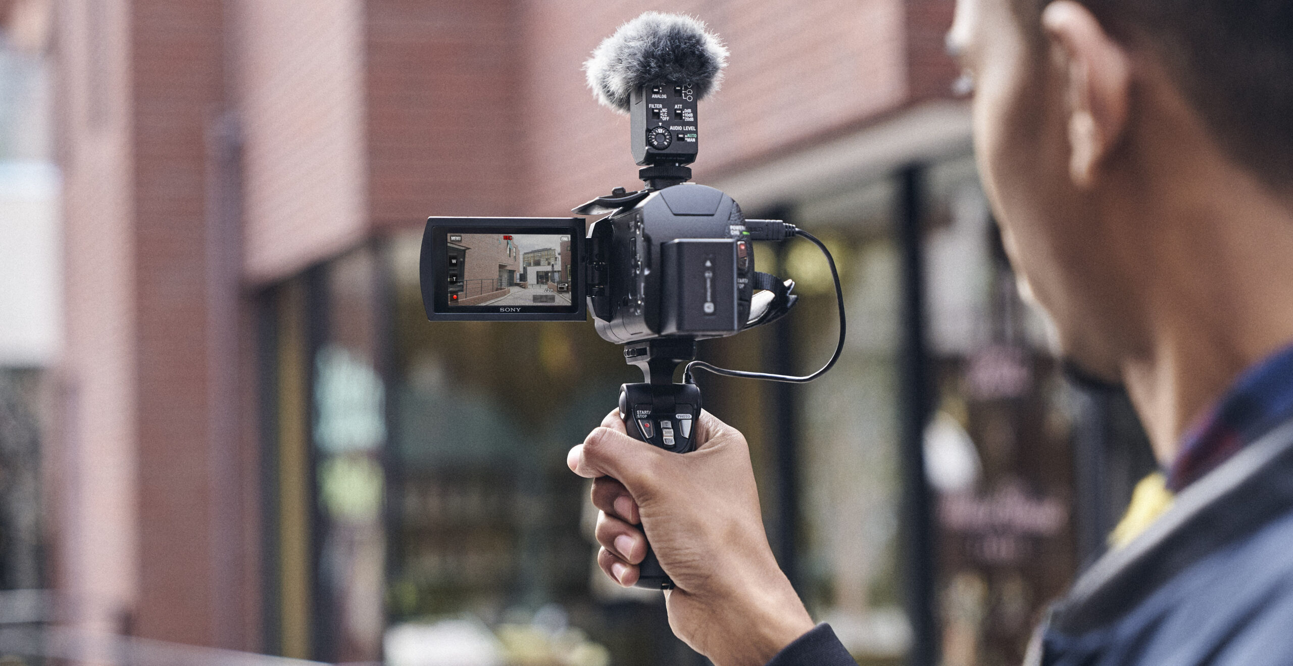 Die Handycam– hier mit optionalem Griff GP-VPT1 und ECM-B1M – wurde laut Sony speziell für Content Creator und Vlogger entwickelt, die Filmmaterial in besonders hoher Qualität produzieren möchten.