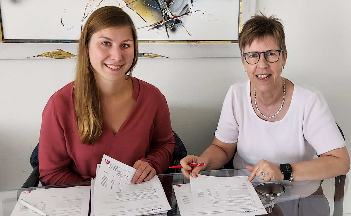Sara Forster und Lisbeth Grimm bei der Auszählung und Auswertung der eingegangenen Abstimmungsformulare im Sekretariat von Imagingswiss
